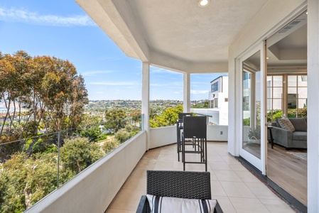The remaining three Suites are located on the downstairs second floor. The Primary Bedroom Suite is stunning, with a King size bed and tall headboard, a spacious sofa seating area, large flat-screen TV, modern glass fireplace and amazing ocean views. Enjoy a cup of coffee in the morning while lounging on your private balcony watching the colorful kayaks gliding between La Jolla Shores and the Cove. Life just doesn't get any better than this!